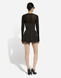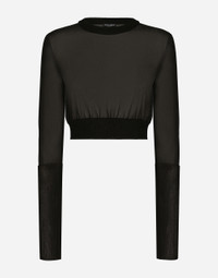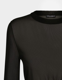 The FW24/25 Mambo Collection is rewriting the rules of Italian elegance, merging the sophisticated style of the 1940s and 1950s with the iconography of American pin-ups. The unmistakable polka-dot motif takes center stage, coming in a variety of shapes and sizes and adorning tulle, charmeuse, twill, silk and poplin, giving life to looks distinguished by black and white accessories and details. An homage to the beauty of Italy and its traditions, the distinctive details of Dolce&Gabbana’s creations. Viscose sweater: • Black • 18-gauge knit • Round neck • Long sleeves • Cropped fit • The piece measures 41 cm from the shoulder seam on a size IT 40 • The model is 175 cm tall and wears a size IT 40 • Made in Italy External composition: 80% Viscose 20% Polyamide