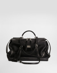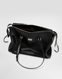 In the Fall/Winter 2025 Fashion Show Collection, shearling jackets, in fur-free versions, reveal slip dresses and create contrast' plays while denim welcomes fabric or Leo print inserts. Sweatshirts are the result of long experimentation with volumes. Evening looks become precious thanks to dresses with special embroideries and luminous touches of sequins and crystals. Sheepskin inserts also unite hats, shoes, and bags, including those with pockets. The Vittoria shoulder bag is the perfect balance between elegance and functionality, crafted from Calfskin with Miami palladium detailing for a sophisticated look. Vittoria calfskin bag: • Black • Zip closure • Miami palladium plating • External customization with monogalvanic plate • Interior with zip pocket and flat pocket • Item equipped with a logo bag and pre-assembled box • Measurements: H29.5 x W39.5 x D15.5 cm • Can hold keys, card holder and phone • Made in Italy External Composition: 95% Calfskin, 5% PVC