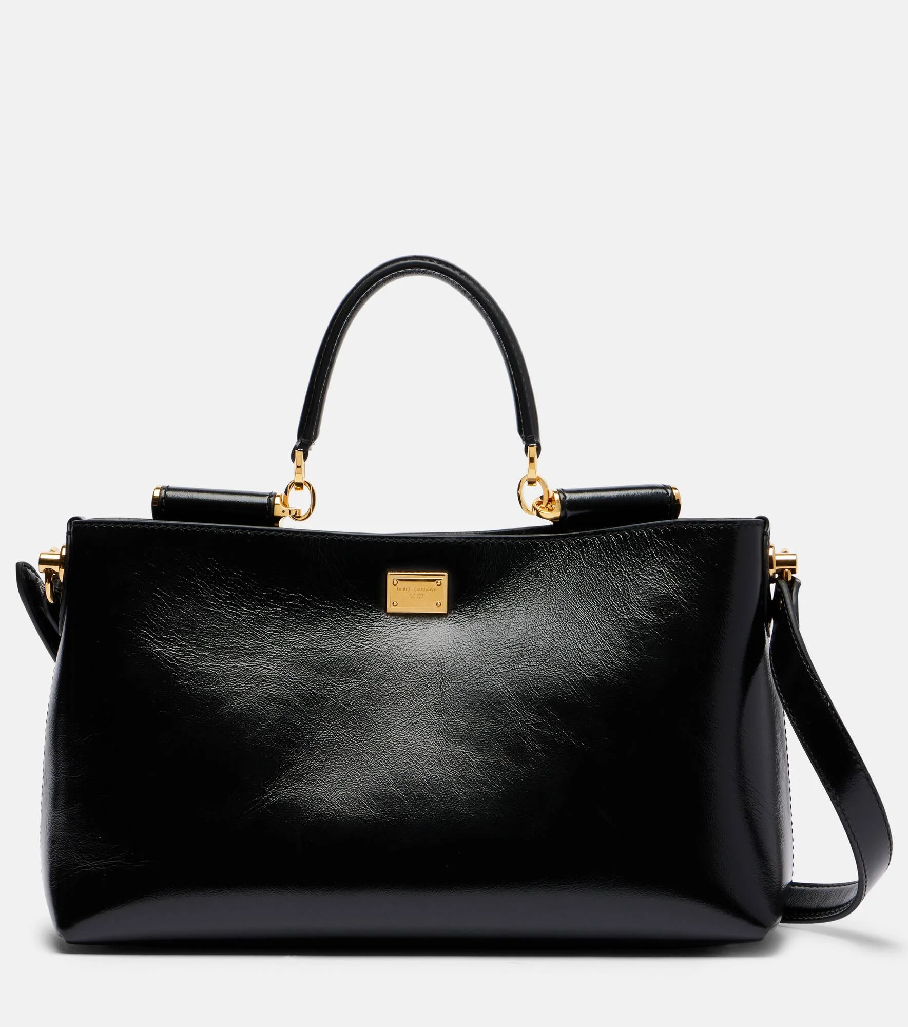 Sicilian culture is on display in Dolce&Gabbana's aesthetic, with bold styles inspired by the brand's Italian heritage. The Vittoria tote bag is crafted from supple leather and boasts a detachable shoulder strap and gold-toned hardware. Product Details - Material: calf leather - Lining: suede - Made in Italy - Color: black - Designer color name: Nero - Item color: black - Hardware color: gold - Top handle, Adjustable shoulder strap - Internal details: two internal compartments - Closure: push-lock fastening - Includes: dust bag - Item number: P01129316 Size & Fit - Height 19cm-7.5" - Width 31cm-12" - Depth 9,5cm-3.5" - Length of handle 27cm-10.5" - Adjustable shoulder strap - Min. length shoulder strap 50cm-19.5" - Max. length shoulder strap 106cm-41.5"