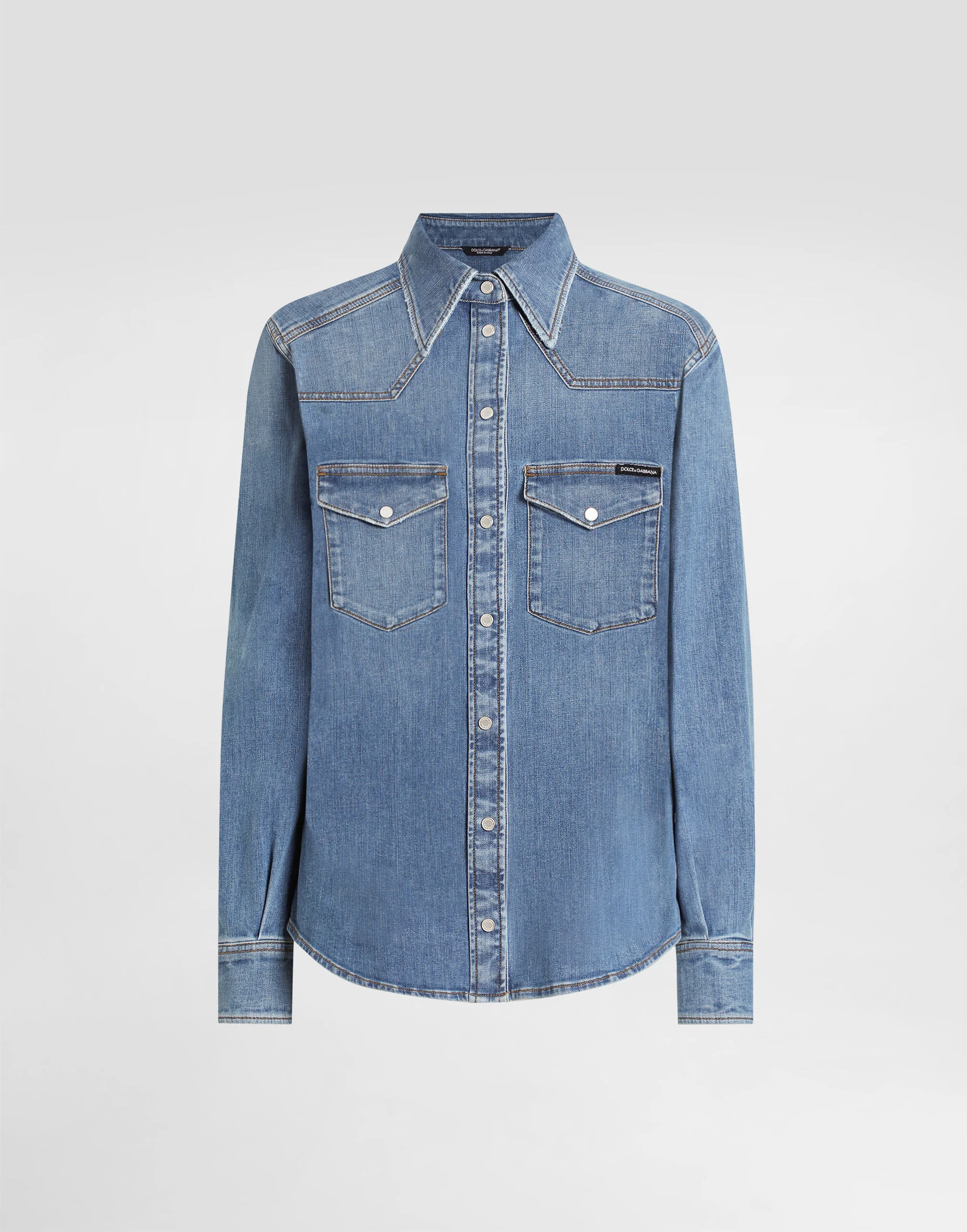 This denim shirt is a versatile and modern garment, perfect for those who love a casual but refined style. With thoughtful details and quality craftsmanship, it's a must-have for any wardrobe. Denim shirt: • Multi-colored • Long sleeves with pleats at the bottom • The model is 175 cm tall and wears size 40 IT • Made in Italy External Composition: 98% Cotton, 2% Elastane
