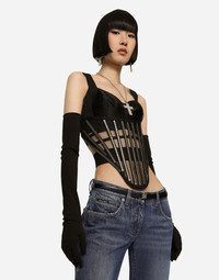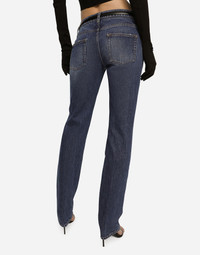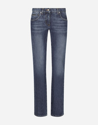 Skinny stretch denim jeans with the Re-Edition label: • Regular rise • 5 pockets • Branded “Kim Dolce&Gabbana” label on the coin pocket • Branded metal and leather “Kim Dolce&Gabbana” tag • Inner leg: 86 cm • Hem: 11 cm • Metal button with logo and zipper • The model is 175 cm tall and wears a size IT 40 • Made in Italy Care And Details External composition: 98% Cotton 2% Spandex