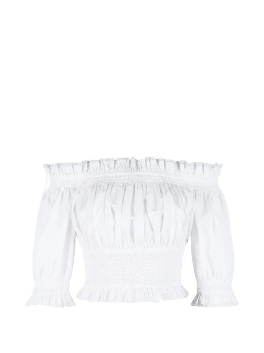 ruffled top Highlights - White - Ruffled details - Elastic edging Made in Italy Composition Cotton 90%, Nylon 10% Washing instructions Read Manufacturer Guidelines
