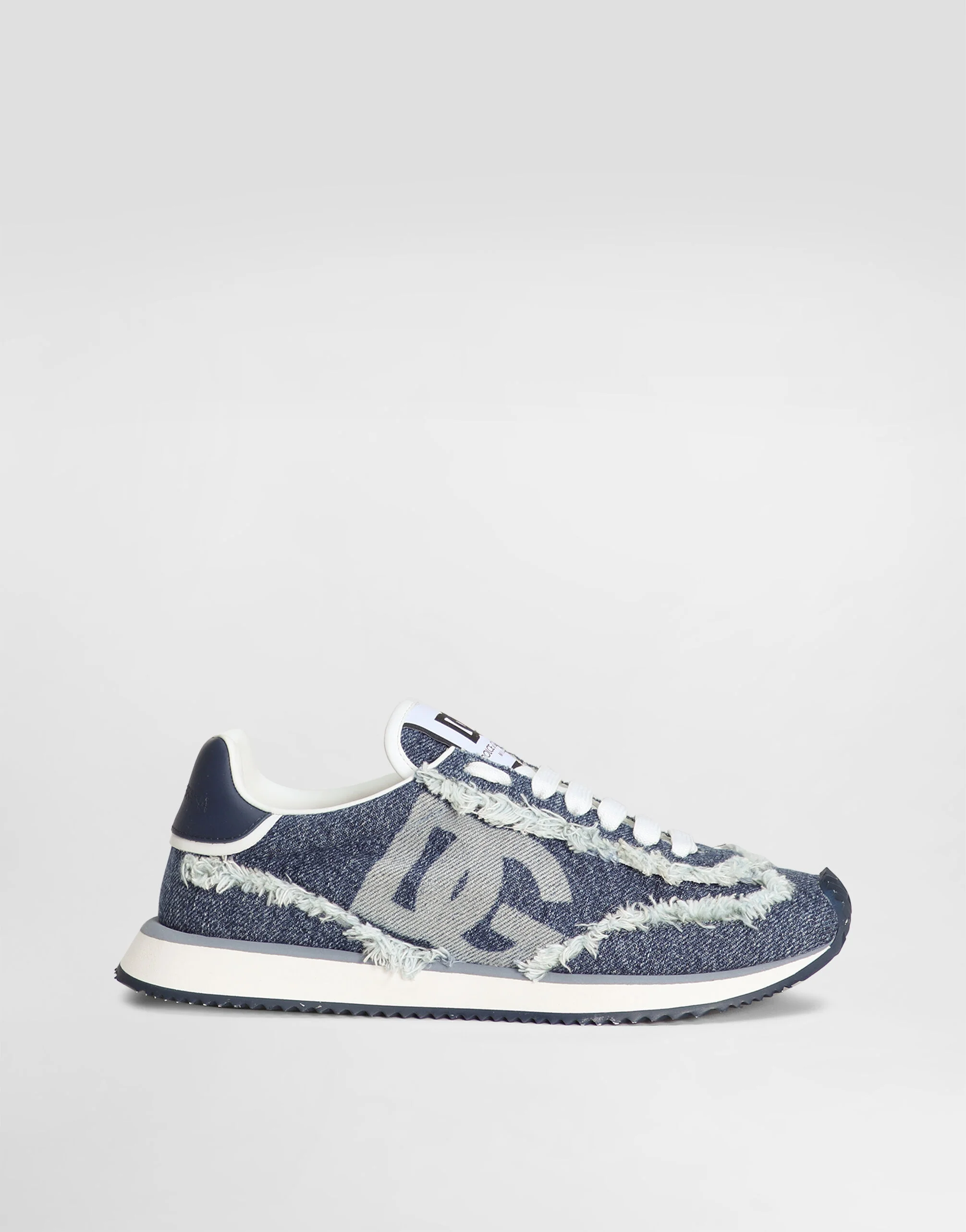 Future-orientated lightness. The new DG CUSHION sneakers feature a soft two-tone suede upper that enhances the crossover DG logo and contrasting print on the mesh side. The light and fitted rubber sole ensures constant comfort, without forgetting about style. The jacquard label finishes off the look, adding a touch of unmistakable elegance. Denim DG Cushion sneakers with DG logo: • Blue • Flat laces • Branded tongue • Calfskin footbed with heat-stamped logo • Rubber sole • Item comes with a branded dust bag • Made in Italy External composition: 85% Cotton 10% Calfskin 5% Spandex Internal composition: 90% Lambskin 10% Goatskin