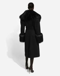 Wool and cashmere coat with faux fur collar