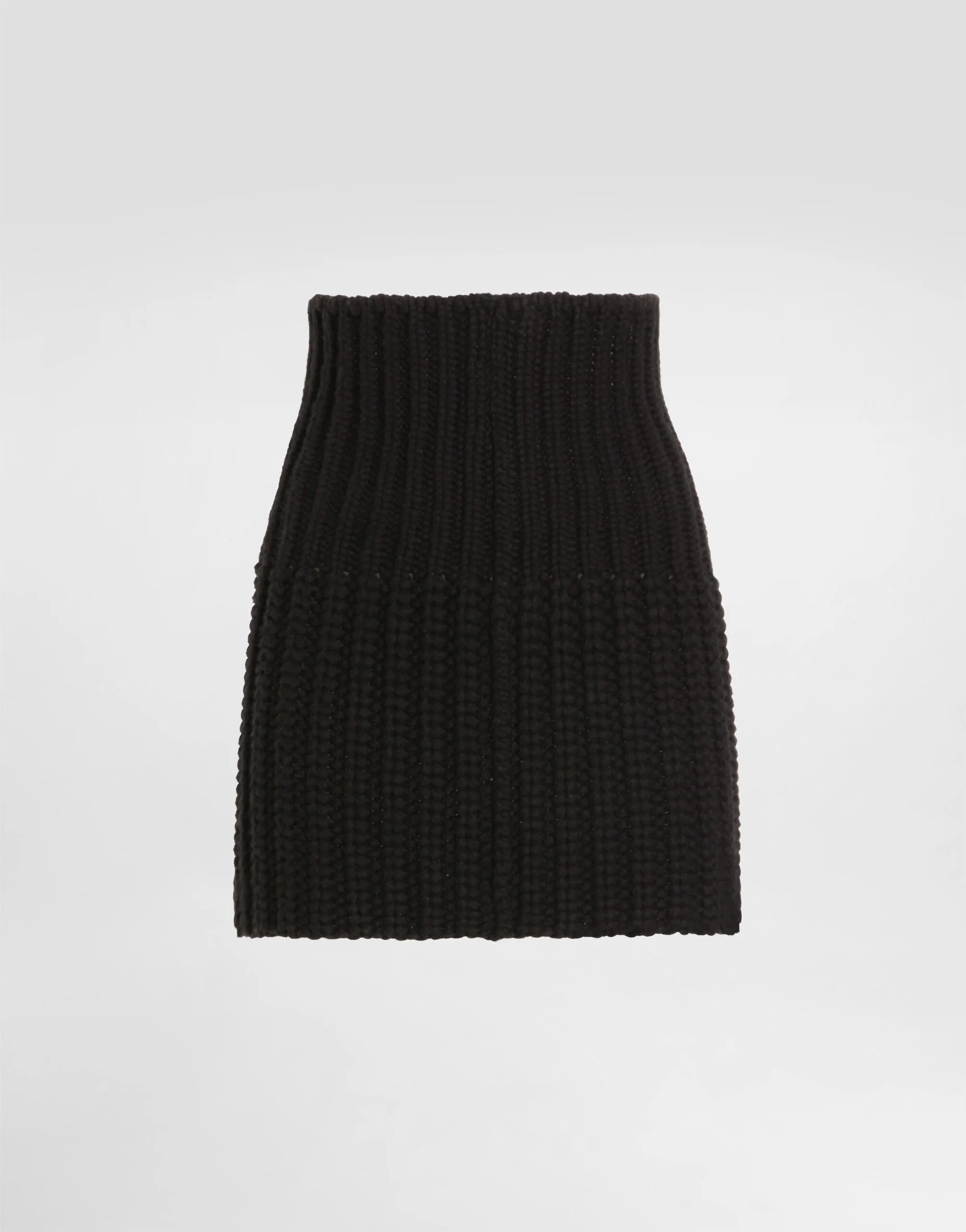 In the Fall/Winter 2025 Fashion Show Collection, shearling jackets, in fur-free versions, reveal slip dresses and create contrast' plays while denim welcomes fabric or Leo print inserts. Sweatshirts are the result of long experimentation with volumes. Evening looks become precious thanks to dresses with special embroideries and luminous touches of sequins and crystals. Sheepskin inserts also unite hats, shoes, and bags, including those with pockets. This high-waisted mini skirt is a must-have for any woman's wardrobe. Made with a luxurious blend of virgin wool and cashmere, it offers unparalleled comfort and style, perfect for enhancing the feminine silhouette with elegance and class. Wool and cashmere miniskirt: • Black • High waist • The model is 175 cm tall and wears size 40 IT • Made in Italy External Composition: 70% Virgin Wool, 30% Cashmere