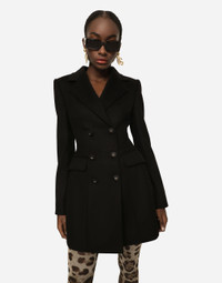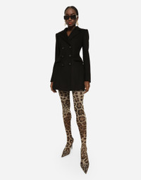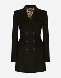 Double-breasted wool and cashmere Turlington jacket: • Black • Notched lapels • Long sleeves • Slim fit • Leopard-print stretch satin lining • Covered button fastenings and DG logo • The piece measures 80 cm from the center back on a size IT 40 • The model is 175 cm tall and wears a size IT 40 • Made in Italy Care And Details External composition: 90% Wool 10% Cashmere Internal composition: 97% Polyester 3% Spandex