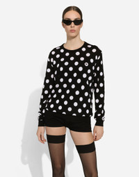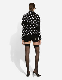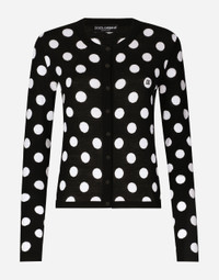 The FW24/25 Mambo Collection is rewriting the rules of Italian elegance, merging the sophisticated style of the 1940s and 1950s with the iconography of American pin-ups. The unmistakable polka-dot motif takes center stage, coming in a variety of shapes and sizes and adorning tulle, charmeuse, twill, silk and poplin, giving life to looks distinguished by black and white accessories and details. An homage to the beauty of Italy and its traditions, the distinctive details of Dolce&Gabbana’s creations. Wool and silk cardigan with polka-dot inlay: • Black and White • 18-gauge knit • Round neck • Long sleeves • Regular fit • Button fastenings • The piece measures 64 cm from the shoulder seam on a size IT 40 • The model is 175 cm tall and wears a size IT 40 • Made in Italy External composition: 58% Wool 42% Silk