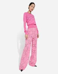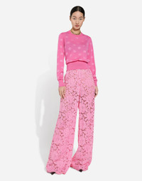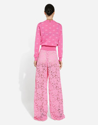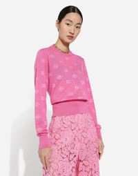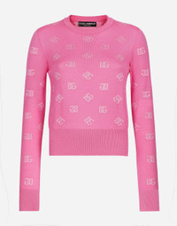The DNA collection is distinguished by timeless shapes, bringing together three concepts: Sicilian flair, tailoring and sensuality. Nero Sicilia black and optical white predominate and pair with colors that catapult us onto the island of Sicily and make us dream. The designers channel the timeless wardrobe made up of creations that are instantly unmistakable in their simplicity, presenting us with sophisticated beauty loaded with meaning and symbolism that transcends fashion. Wool and silk jacquard sweater with tonal DG logo: • Fuchsia • 18-gauge knit • Round neck • Long sleeves • French seam armholes • Dense hand • Ribbed neck and hem • Regular fit • The piece measures 55 cm from the shoulder seam on a size IT 40 • The model is 175 cm tall and wears a size IT 40 • Made in Italy External composition: 81% Virgin Wool 19% Silk