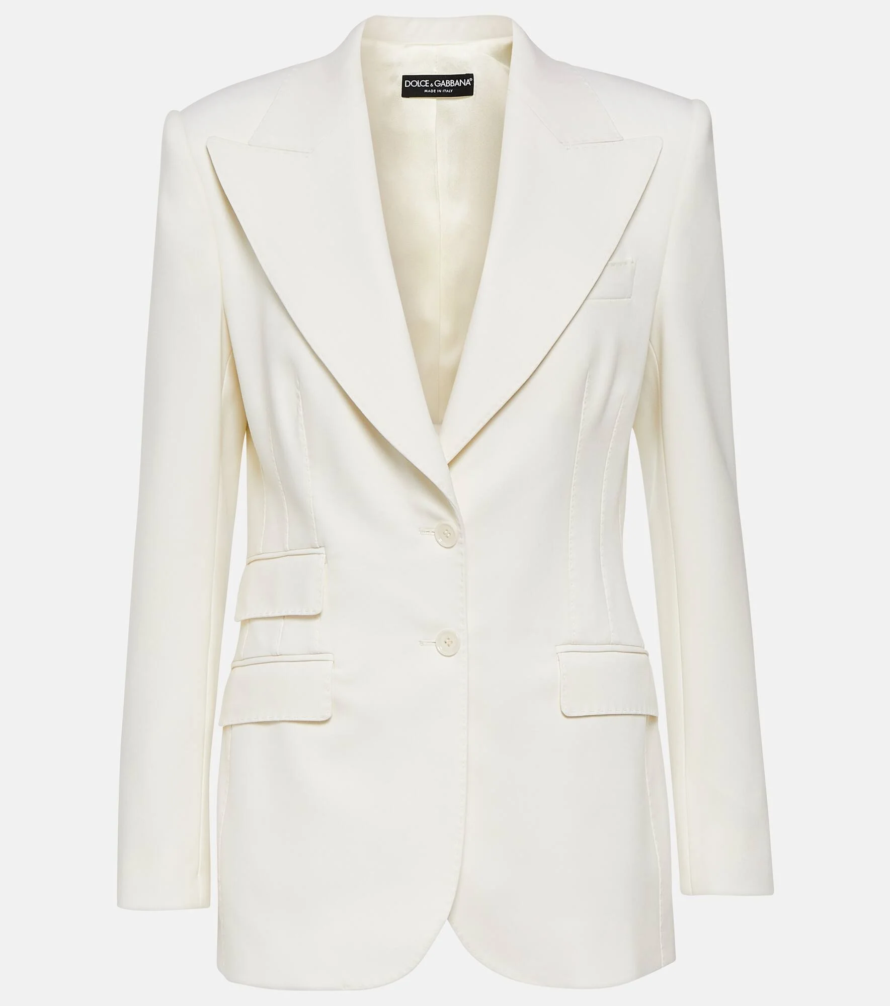 Sicilian design duo Dolce&Gabbana is well-versed in the art of glossy glamour. This single-breasted blazer has been tailored in Italy from a wool blend and features wide peak lapels. Product Details - Made in Italy - Closure: button fastening - Shoulder pads - Pockets: breast pocket, flap pockets, faux pockets - Lining: 92% silk, fully lined, 8% elastane - Designer color name: Bianco Naturale - Care instructions: dry clean - Material: 6% polyamide, 2% elastane, 92% wool - Item number: P00833920 Size & Fit - True to size - Shoulder pad inserts - Cinched waist - Mid-weight material - Falls below the hip - The model seen in the picture is 178cm-5'10" and wearing a size IT 40