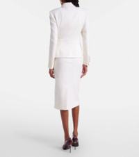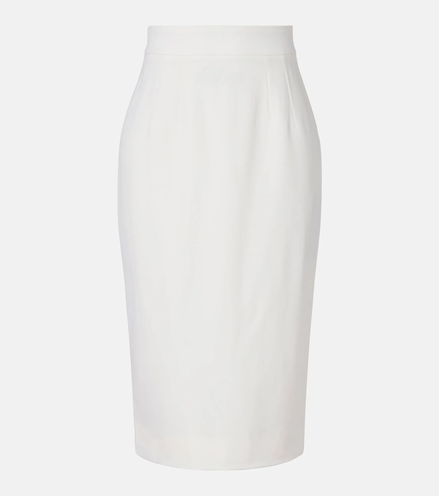 This white pencil skirt by Dolce&Gabbana is a wardrobe essential, featuring a refined silhouette and tailored details. The elegant design is finished with a concealed zip closure and a structured silhouette. Product Details - Material: 97% wool, 3% elastane - Care instructions: dry clean - Made in Italy - Color: white - Designer color name: Bianco Naturale - Lining: 92% silk, 8% elastane - Closure: concealed zipped back - Short vent - Item number: P01122869 Size & Fit - True to size - Non-stretchy fabric - High-waisted - The model seen in the picture is 178cm-5'10" and wearing a size IT 40
