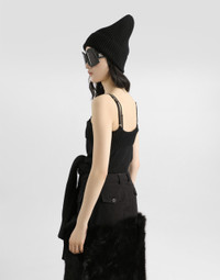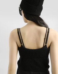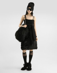 In the Fall/Winter 2025 Fashion Show Collection, shearling jackets, in fur-free versions, reveal slip dresses and create contrast' plays while denim welcomes fabric or Leo print inserts. Sweatshirts are the result of long experimentation with volumes. Evening looks become precious thanks to dresses with special embroideries and luminous touches of sequins and crystals. Sheepskin inserts also unite hats, shoes, and bags, including those with pockets. This black vest is the perfect balance between comfort and style. Made with a blend of materials like alpaca and wool, it offers a soft and warm feel ideal for any season. Its simple line and sleeveless design make it versatile and easy to combine with any outfit. Wool blend tank top: • Black • The model is 175 cm tall and wears size 40 IT • Made in Italy External Composition: 40% Polyamide, 33% Alpaca, 27% Wool