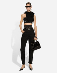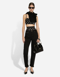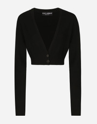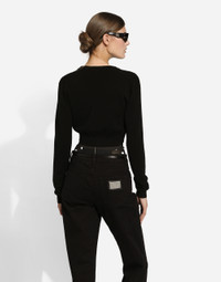 The FW24/25 Mambo Collection is rewriting the rules of Italian elegance, merging the sophisticated style of the 1940s and 1950s with the iconography of American pin-ups. The unmistakable polka-dot motif takes center stage, coming in a variety of shapes and sizes and adorning tulle, charmeuse, twill, silk and poplin, giving life to looks distinguished by black and white accessories and details. An homage to the beauty of Italy and its traditions, the distinctive details of Dolce&Gabbana’s creations. Wool cardigan with plunging necklace: • Black • 18-gauge knit • V-neck • Long sleeves • Cropped fit • The piece measures 40 cm from the shoulder seam on a size IT 40 • The model is 175 cm tall and wears a size IT 40 • Made in Italy External composition: 100% Virgin Wool