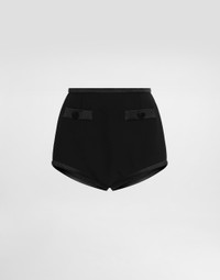 These elegant wool crepe culottes are a perfect mix of comfort and style, ideal for a sophisticated and modern look. Culottes in wool crepe: • Black • Dolce waist with contrasting darts and fillets • 1.5 cm high strap • Lacing in the center back • Unlined and interlined • The model is 175 cm tall and wears size 40 IT • Made in Italy External Composition: 90% Virgin Wool, 8% Silk, 2% Polyester Internal Composition: 100% Polyamide