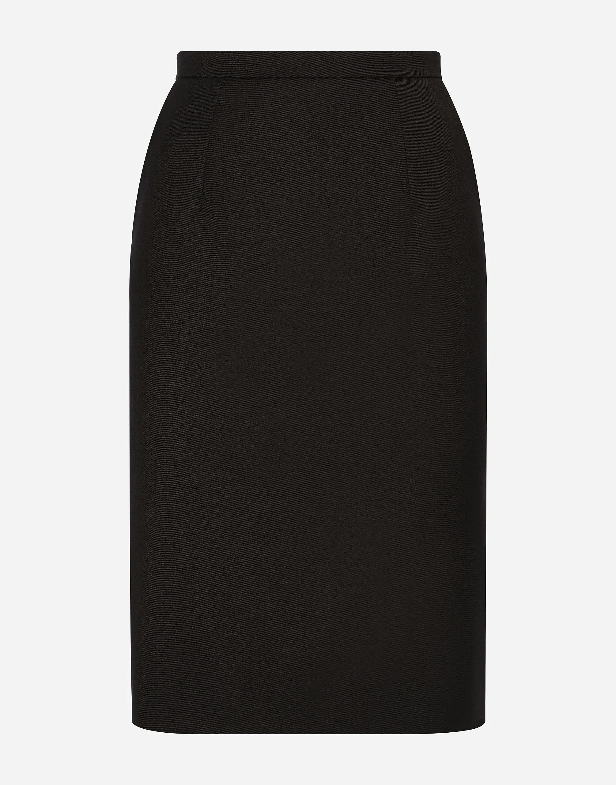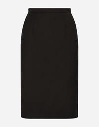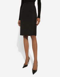 In the Black Sicily Collection, black, the absolute protagonist, becomes sensual black, sheer black, Dolce&Gabbana black. The key concept is “Black on Black”. Playing around with proportions, volumes, layered fabrics and sheer details, this style becomes absolute, bold and sexy. Unique and unmistakable, it is conveyed through the contrasts between glossy and matte fabrics, lines, volumes and special details, thereby expressing a woman’s various personalities and the true identity of Dolce&Gabbana. Wool crepe midi pencil skirt: • Black • High-waisted • Tonal stretch silk satin lining • Rear zipper and hook-and-eye fastening • The piece measures 60 cm from the waist down on a size IT 40 • The model is 175 cm tall and wears a size IT 40 • Made in Italy External composition: 55% Polyester 45% Wool Internal composition: 92% Silk 8% Spandex