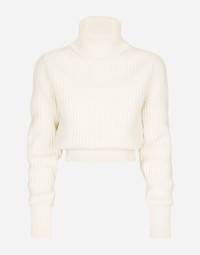Wool fisherman’s rib turtle-neck sweater with metal DG logo: • White • 5-gauge knit • Turtle-neck • Long sleeves • French seam armholes • Ribbed neck, cuffs and hem • Slim fit • The piece measures 48 cm from the shoulder seam on a size IT 40 • The model is 175 cm tall and wears a size IT 40 • Made in Italy Care And Details External composition: 100% Virgin Wool