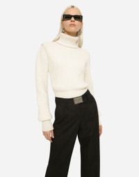 Wool fisherman’s rib turtle-neck sweater with DG logo