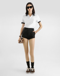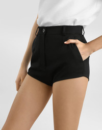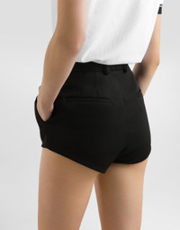 These elegant shorts are made of fine wool gabardine, perfect for a sophisticated and modern look. The classic design and quality of the materials make this garment a must-have for any fashionable wardrobe. Wool gabardine shorts: • Black • Dolce waist • Front pleats at the waist and French pockets • Two pleats at the waist on the back with single welt pockets • Lined • Inseam length 3.5 cm on size 40 IT • The model is 175 cm tall and wears size 40 IT • Made in Italy External Composition: 100% Virgin Wool Internal Composition: 100% Silk