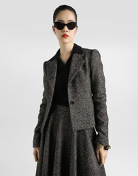This single-breasted jacket in a dotted wool blend represents contemporary elegance. Ideal for completing a sophisticated look, it is perfect for the modern woman who appreciates quality and timeless style. Single-breasted jacket in dotted wool blend: • Multi-colored • Lapel neckline • Vertical welt pocket • Long sleeves • Lined • The model is 175 cm tall and wears size 40 IT • Made in Italy External Composition: 48% Virgin Wool, 35% Wool, 16% Polyamide, 1% Elastane Internal Composition: 97% Polyester, 3% Elastane