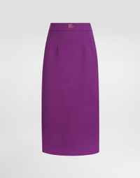This pencil skirt is the epitome of sophisticated feminine elegance. With its fitted silhouette and refined details, it is perfect for those looking for a classic and timeless look. Wool crepe sheath skirt: • Violet • Sheath line • Side slit • 5 cm high belt with DG logo at the center • Covered zip closure with hook and buttonhole • Lined • The model is 175 cm tall and wears size 40 IT • Made in Italy External Composition: 100% Virgin Wool Internal Composition: 92% Silk, 8% Elastane