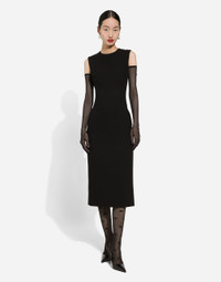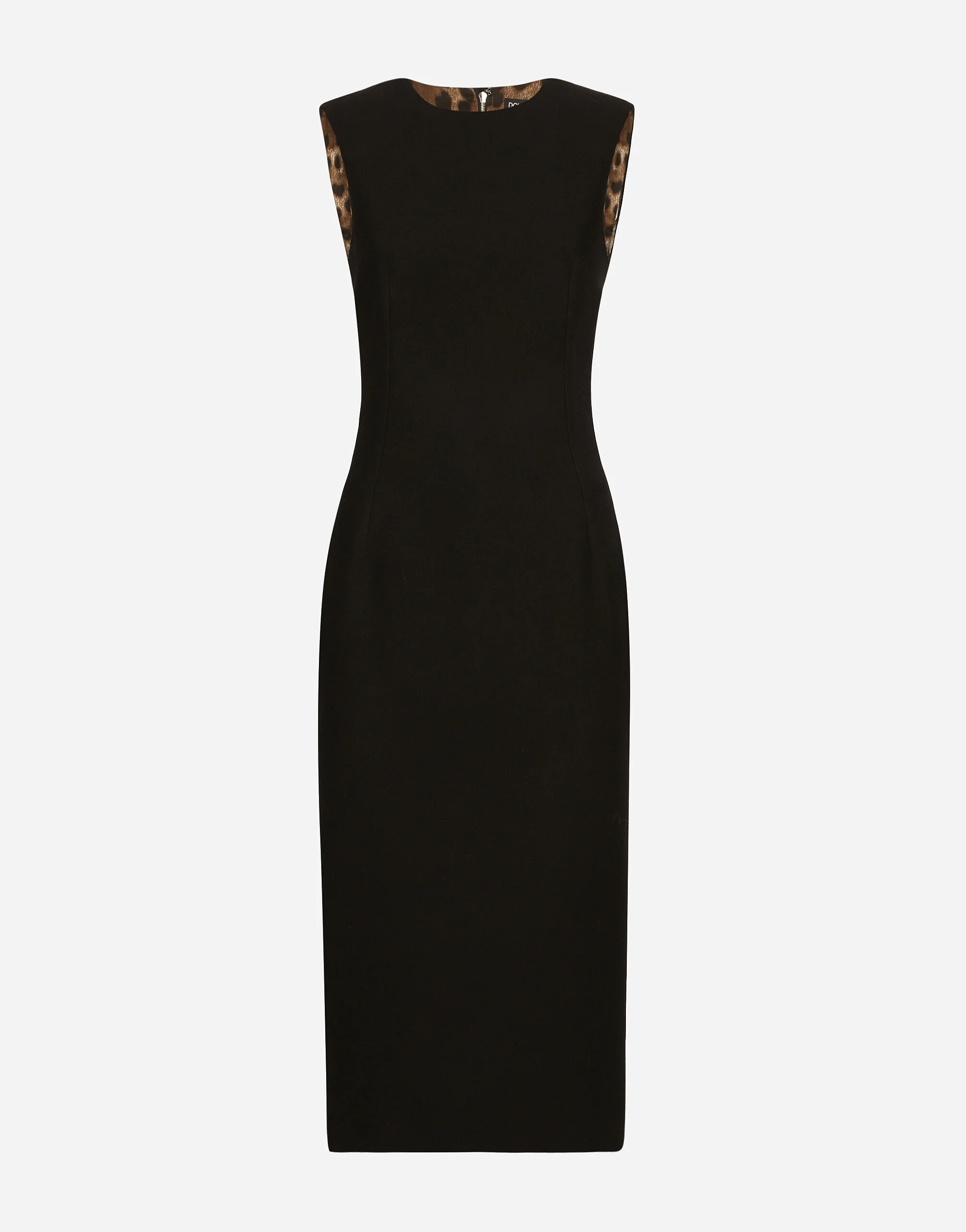 The DNA collection is distinguished by timeless shapes, bringing together three concepts: Sicilian flair, tailoring and sensuality. Nero Sicilia black and optical white predominate and pair with colors that catapult us onto the island of Sicily and make us dream. The designers channel the timeless wardrobe made up of creations that are instantly unmistakable in their simplicity, presenting us with sophisticated beauty loaded with meaning and symbolism that transcends fashion. Stretch wool sheath dress: • Black • Round neck • Sleeveless • Leopard-print stretch satin lining • Rear zipper and hook-and-eye fastening • The piece measures 75 cm from the waist down on a size IT 40 • The model is 175 cm tall and wears a size IT 40 • Made in Italy External composition: 98% Wool 2% Spandex Internal composition: 93% Silk 7% Spandex