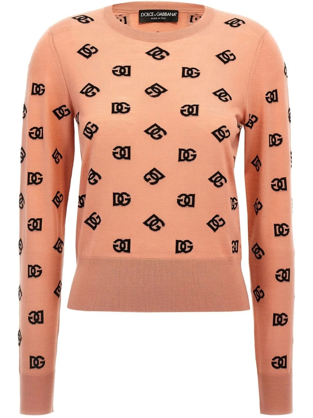DNA wool-silk logo jumper Highlights - Coral pink - Crew neck - Long sleeves - Ribbed cuffs and hem Made in Italy Composition Virgin Wool 91%, Silk 9%