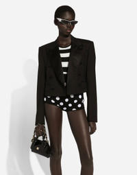 The FW24/25 Mambo Collection is rewriting the rules of Italian elegance, merging the sophisticated style of the 1940s and 1950s with the iconography of American pin-ups. The unmistakable polka-dot motif takes center stage, coming in a variety of shapes and sizes and adorning tulle, charmeuse, twill, silk and poplin, giving life to looks distinguished by black and white accessories and details. An homage to the beauty of Italy and its traditions, the distinctive details of Dolce&Gabbana’s creations. Wool sweater in inlaid stripes: • Multi-colored • 18-gauge knit • Round neck • 3/4 sleeves • Regular fit • The piece measures 65 cm from the shoulder seam on a size IT 40 • The model is 175 cm tall and wears a size IT 40 • Made in Italy External composition: 100% Virgin Wool