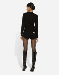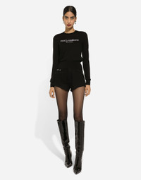 In the Black Sicily Collection, black, the absolute protagonist, becomes sensual black, sheer black, Dolce&Gabbana black. The key concept is “Black on Black”. Playing around with proportions, volumes, layered fabrics and sheer details, this style becomes absolute, bold and sexy. Unique and unmistakable, it is conveyed through the contrasts between glossy and matte fabrics, lines, volumes and special details, thereby expressing a woman’s various personalities and the true identity of Dolce&Gabbana. Wool sweater with Dolce&Gabbana logo inlay: • Black • 18-gauge knit • Round neck • Long sleeves • French seam armholes • Dense hand • Ribbed neck and hem • Slim fit • The piece measures 55 cm from the shoulder seam on a size IT 40 • The model is 175 cm tall and wears a size IT 40 • Made in Italy External composition: 100% Virgin Wool