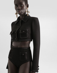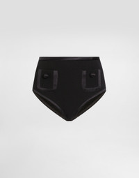 The Spring/Summer 2025 Women’s Collection is celebrating Italian beauty through bold and charismatic femininity. The 50s-inspired lingerie is the star, intermingling with fitted dresses, corsets and oversize trench coats. The iconic jackets have been updated with cropped cuts and modern inserts, while the floral prints add a romantic edge. The eveningwear shines with light fabrics and crystals, accompanied by look-defining accessories, from iconic bags to the cross earrings. Woolen high-waisted panties: • Black • Regular rise • Front slant pockets • Front zipper fastening and button • The model is 175 cm tall and wears a size IT 40 • Made in Italy External composition: 90% Wool 08% Silk 02% Polyester Internal composition: 100% Polyamide