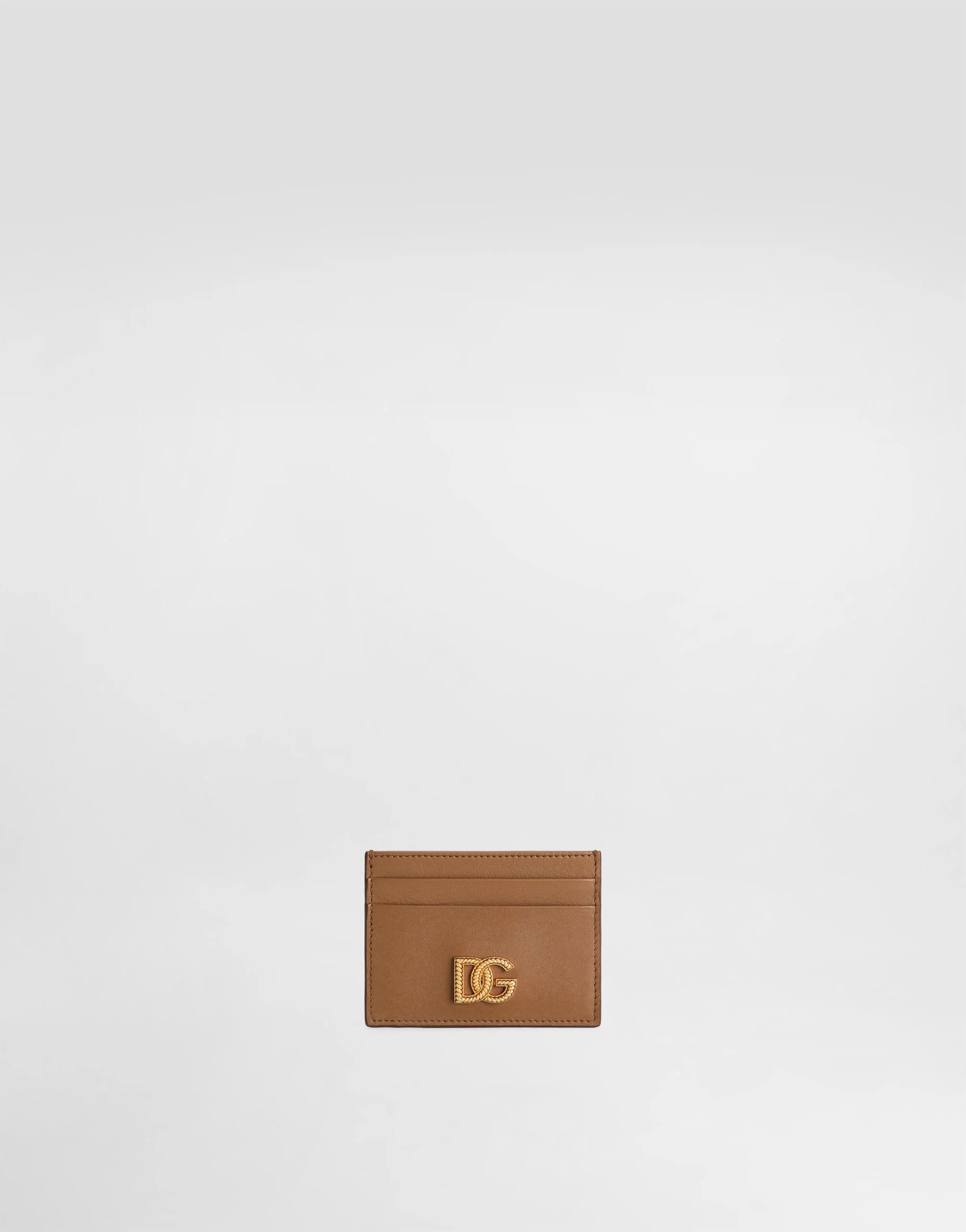An elegant and functional accessory, perfect for organizing your cards in style thanks to its woven workmanship and the crossed torchon DG logo. Woven logoed card holder: • Brown • Vintage brass plating • External customization with DG crossed torchon logo • Internal customization with logoed flag label • Measurements: H7.5 x W10 x D0.5 cm • Made in Italy External Composition: 100% Calfskin Internal Composition: 100% Viscose