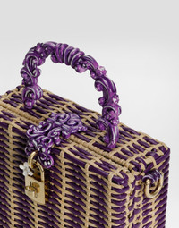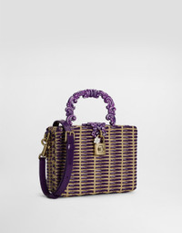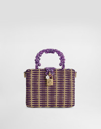 A masterpiece of craftsmanship, the Dolce Box bag combines the interweaving of shiny Calfskin and raffia with hand-painted baroque details, expressing timeless elegance. Woven Dolce Box handbag: • Multi-coloured • Hand-painted baroque handle and removable and adjustable shoulder strap • Padlock and swivel closure in electroplated light gold with enameled flower • Interior with card pocket and flat pocket • Item equipped with a logo bag and pre-assembled box • Measurements: A14.5x L19 x P7 cm • Can hold keys, card holder and phone. • Made in Italy External Composition: 50% Viscose, 50% CalfskinInternal Composition: 100% Cotton
