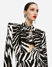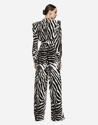 • Round neck with scarf that can be tied into a bow • Long sleeves • Inner leg. 86.5 cm • Hem. 30 cm • Stretch silk crepe de chine lining • Rear zipper and hook-and-eye fastening • The model is 175 cm tall and wears a size IT 40 • Made in Italy Care And Details External composition: 97% Viscose 3% Spandex Internal composition: 96% Silk 4% Spandex