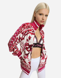 Zip-up cady sweatshirt with Majolica print: • Multi-colored • Fine-rib trims and neck with striped detailing • Long sleeves • Regular fit • Unlined • Front zipper fastening • The piece measures 62 cm from the back of the neck on a size IT 40 • The model is 175 cm tall and wears a size IT 40 • Made in Italy The difference in the print placement that you may find on this product is a feature of Dolce&Gabbana’s “Handmade” pieces. A detail that makes every garment or accessory unique and exclusive. Care And Details External composition: 97% Viscose 3% Spandex