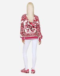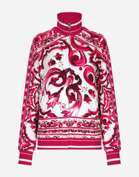 Zip-up cady sweatshirt with Majolica print