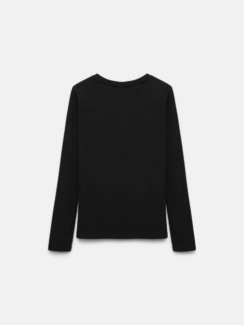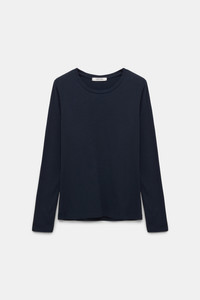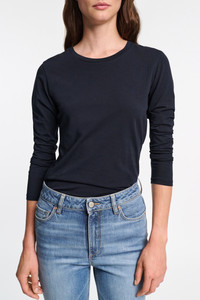 Simply perfect = this basic style. The stretch cotton long sleeve top has a round neckline and is loosely fitted. Material & Care - 96 % Cotton, 4 % Elastane - Round neck long sleeve top - Fine rib trim around the neckline - Double-needle stitched hem - Double-needle stitched cuffs - WE CARE - This item is finished according to STANDARD 100 by OEKO-TEX, 22.0.98928 Hohenstein HTTI - Mild wash / Delicates - Wash with similar colors Size & Fit - Our model is 180 cm tall and wears a size S - Fitted shoulders - Relaxed, loosely fitted