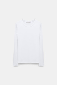 This long sleeve shirt is made from soft stretch cotton and has a straight fit. This essential piece features a D-Rose embroidery. Material & Care - 96 % Cotton, 4 % Elastane - Long sleeve round neck T-shirt with "D rose" embroidery - Ribbed neckline - Double-needle stitching on the cuffs and hem Size & Fit - Our model is 179 cm tall and wears a size S - Fitted shoulders - Straight fit