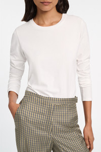 Simply perfect = this basic style. The stretch cotton long sleeve top has a round neckline and is loosely fitted. Material & Care - 96 % Cotton, 4 % Elastane - Round neck long sleeve top - Fine rib trim around the neckline - Double-needle stitched hem - Double-needle stitched cuffs - WE CARE - This item is finished according to STANDARD 100 by OEKO-TEX, 22.0.98928 Hohenstein HTTI - Mild wash / Delicates - Wash with similar colors Size & Fit - Our model is 178 cm tall and wears a size S - Fitted shoulders - Loosely fitted