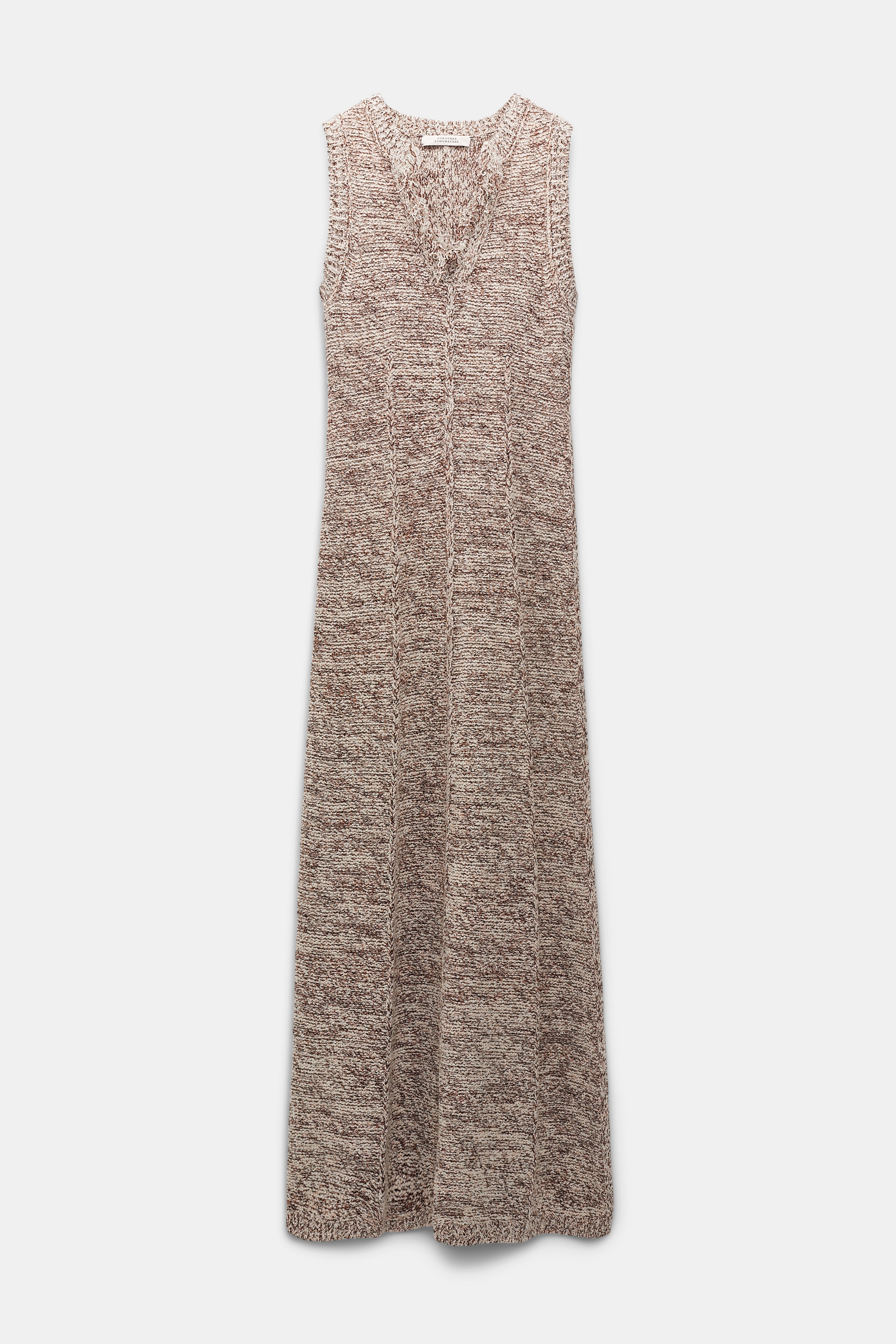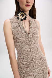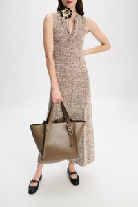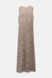 When feeling flashy, put on & shine: The mid-length dress is knit in a cotton mix and has a marled metallic finish. The dress has thick straps and a slit neckline with fringe. Material & Care - 39 % Cotton, 30 % Viscose, 13 % Polyamide, 12 % Wool, 4 % metallized polyester, 2 % Cashmere - Round neckline with slit and fringe detail - Allover metallic marled effect - Seams angle to the outside at the center and skirt - WE CARE - Cotton content is organic cotton - WE CARE - Viscose is FSC certified - Hand wash cold / Machine wash cold - Wash with similar colors Size & Fit - Our model is 180 cm tall and wears a size S - Fitted body - Flared skirt - Dropped shoulders