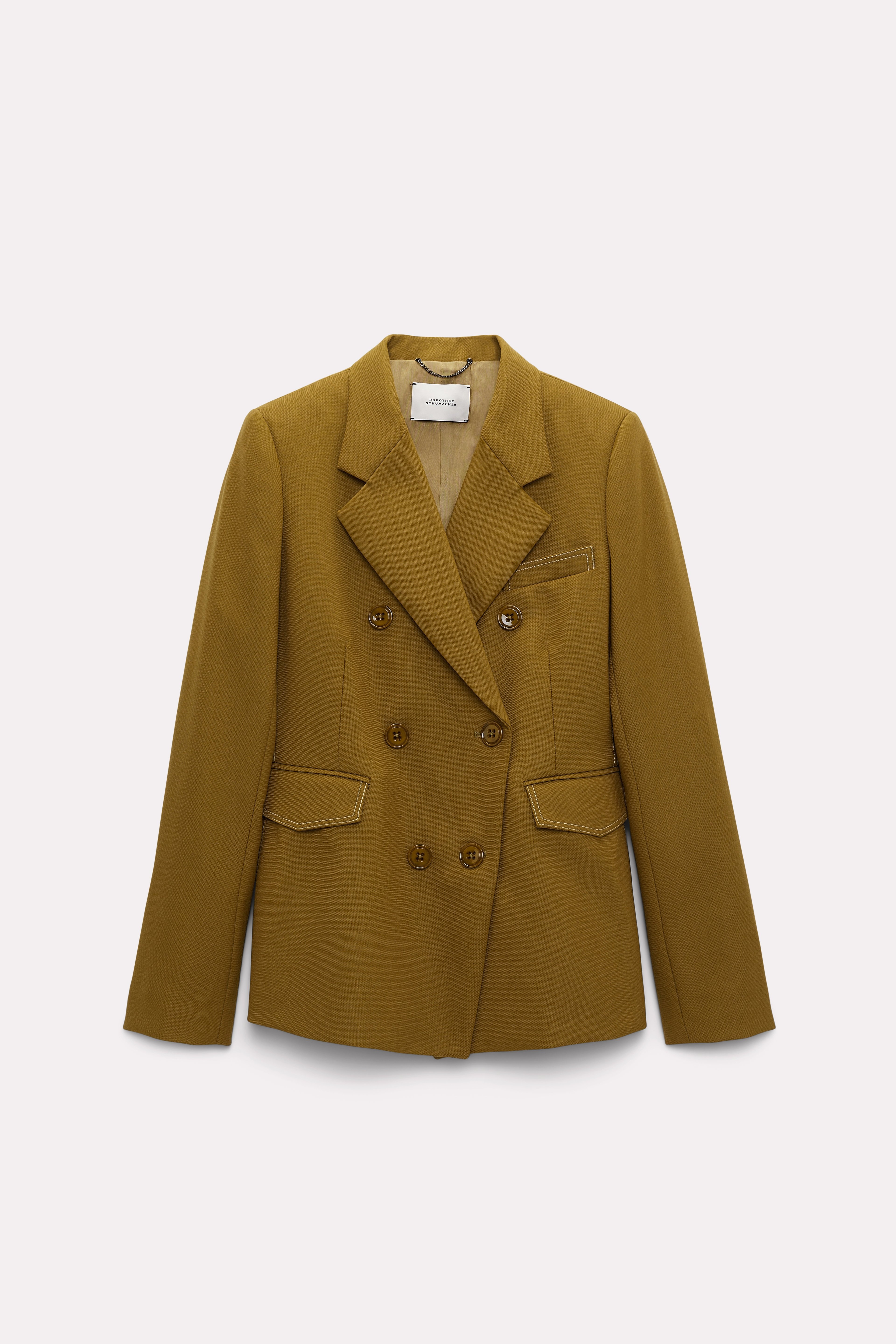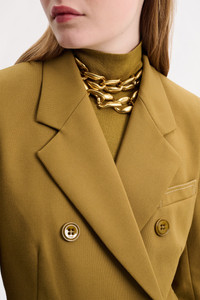 The blazer is double-breasted and has a slim fit. The pockets are detailed with contrast stitching, lending a decorative touch to the tailored style. Pair with the matching pants as suiting. Material & Care - 69 % Polyester, 29 % Viscose, 2 % Elastane - Double-breasted blazer with decorative topstitching - Classic lapel - Welted chest pocket - Flap pockets - Buttoned cuffs - Lined - WE CARE - Viscose content consists of LENZING™ ECOVERO™ fibers from certified, renewable wood sources - Dry clean only - No optical brighteners - Do not expose to extreme light - Shield from sharp items Size & Fit - Our model is 179 cm tall and wears a size S - Fitted