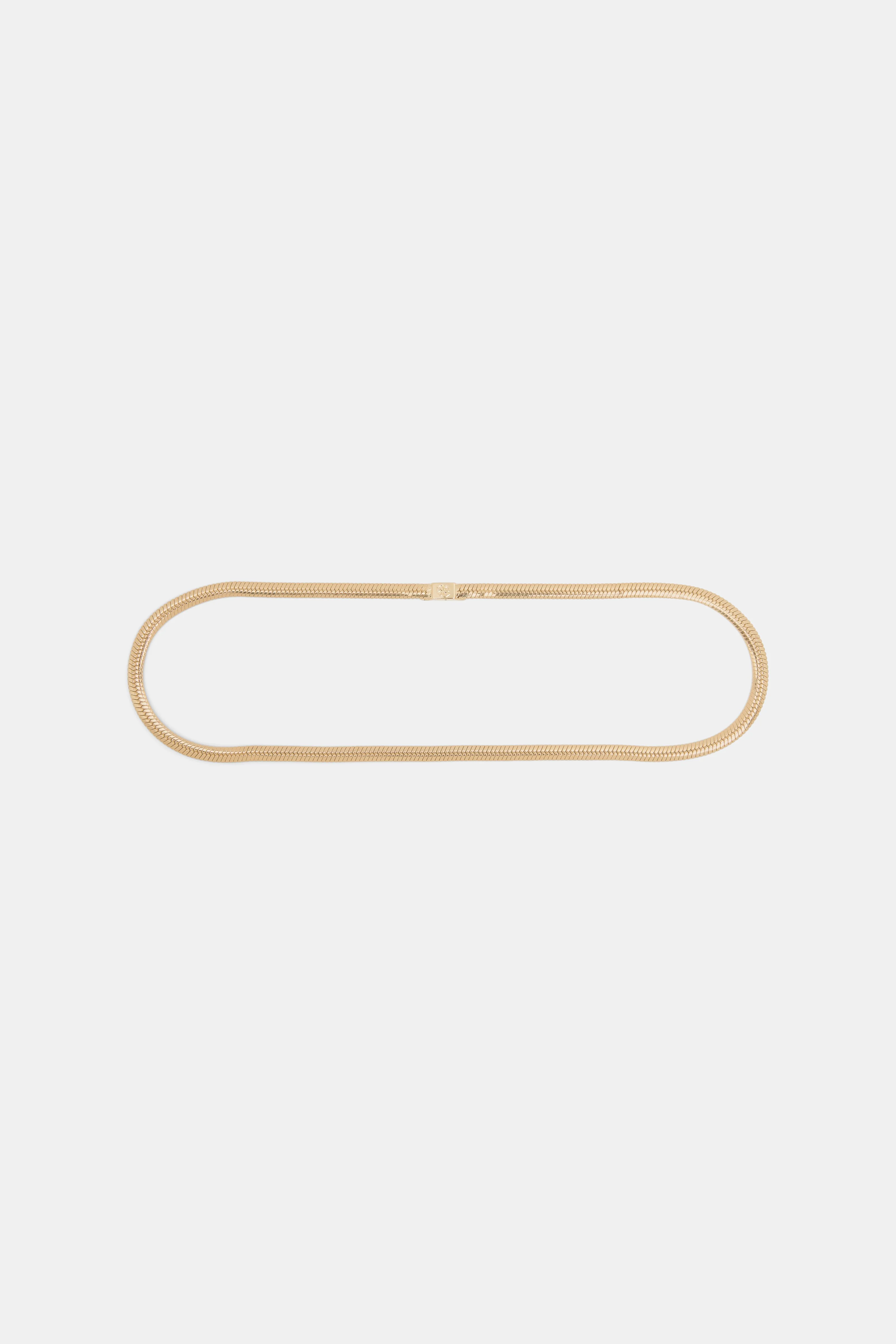 The snake chain belt has a gold-tone finish and closes with a D-rose engraved clip. Material & Care - 90 % Brass, 10 % Metal - Snake chain belt - Brass chain with gold-tone galvanic finish - Clip closure with engraved D-rose Size & Fit - Size = length of belt - Not adjustable