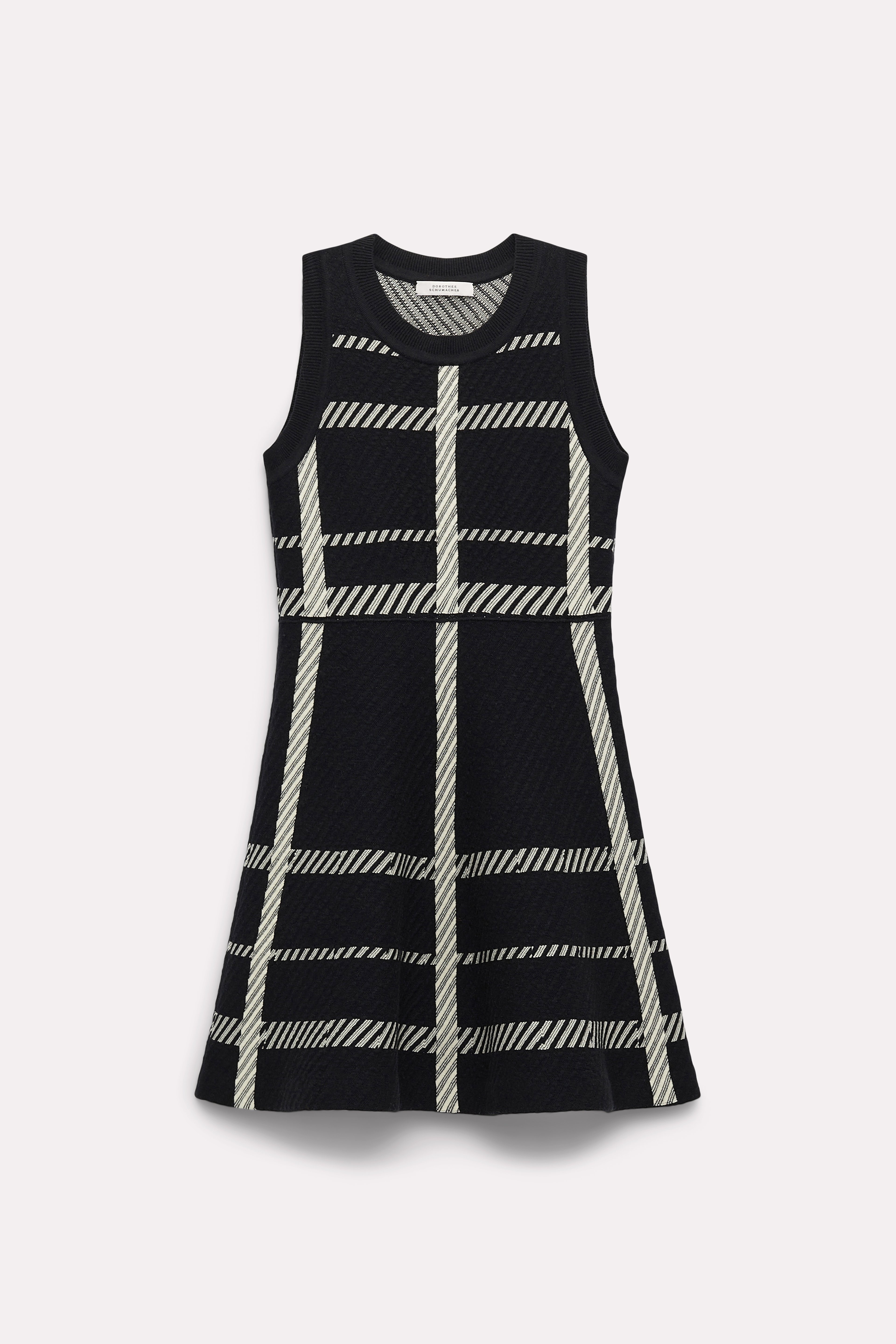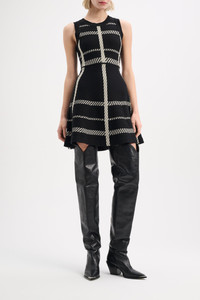 Fun and eye-catching with a thigh-grazing length, the plaid knit mini-dress calls for statement-making footwear. The matching cardigan completes the two-piece look. Material & Care - 46 % Wool, 36 % Viscose, 18 % Polyester - Plaid knit mini-dress - Jacquard knit textured patterning - WE CARE - The wool used is mulesing-free - WE CARE - Viscose content consists of LENZING™ ECOVERO™ fibers from certified, renewable wood sources - Hand wash program cold / machinewash cold - Use wool detergent - Wash with similar colors - Wash and iron inside out Size & Fit - Fitted at the top - Wide, flared skirt