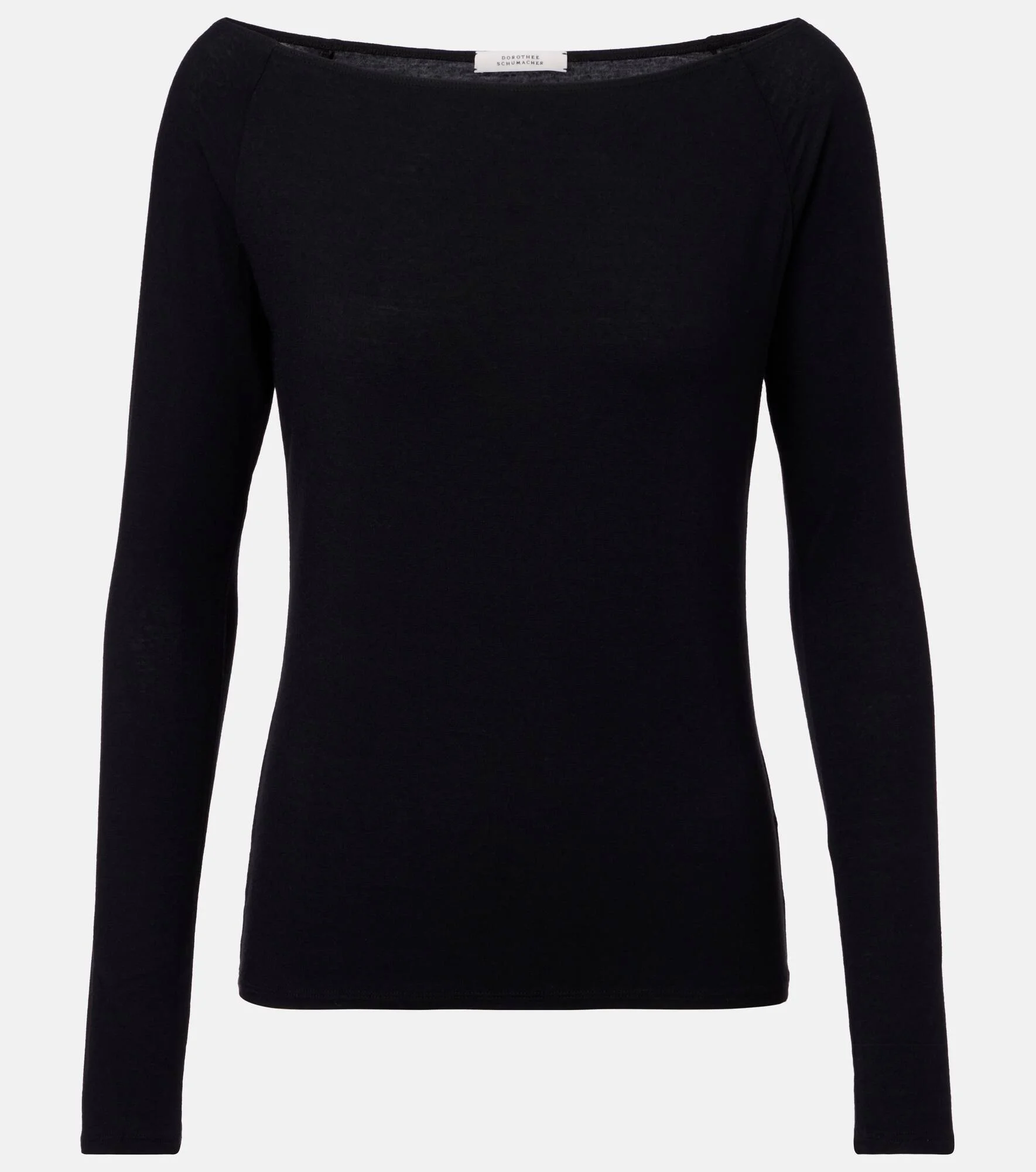 Product Details - Material: 86% modal, 10% cashmere, 4% elastane - Care instructions: hand wash - Made in Portugal - Designer color name: Pure Black - Item color: black - Item number: P01072716 Size & Fit - True to size - Off-the-shoulder - Cinched waist - Slightly stretchy fabric - Falls to the hip - The model seen in the picture is 178cm-5'10" and wearing a size 1