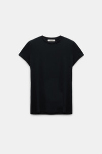 The short sleeve T-shirt is crafted in extra soft fine jersey infused with cashmere. The fitted, stretchy style has a round neckline. Material & Care - 86 % Modal, 10 % Cashmere, 4 % Elastane - Extra soft, round neck T-shirt - Two-way stretch, fine jersey with an extra soft feel - Fine ribbed trim around the neckline - Double-needle stitching at the cuffs and hem - WE CARE - This item is finished according to STANDARD 100 by OEKO-TEX, 22.0.98928 Hohenstein HTTI - Hand wash cold / Machine wash cold - Wash with similar colors Size & Fit - Our model is 180cm tall and wears a size 2 - Fitted