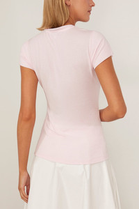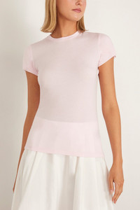 The Dorothee Schumacher Chic Comfort Shirt will go with just about everything in your wardrobe. This t-shirt is crafted in a lightweight stretch cashmere blend with a slim silhouette. Wear yours with a skirt and sandals. FIT DESCRIPTION MODEL MEASUREMENTS - Fits true to size, take your normal size - T-shirt - Slim silhouette - Crew neckline - Ribbed trim - 86 % Modal, 10 % Cashmere, 4 % Elastane - Harriet is wearing a size 1/ XS - Bust: 32" - Waist: 24" - Hips: 30.5" - Height: 5’8.5”