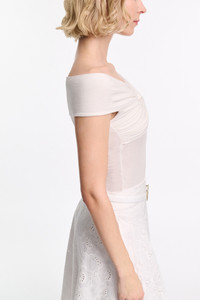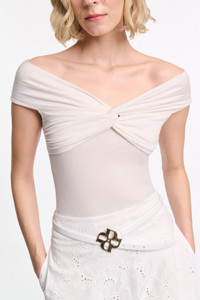 Crafted in extra soft fine jersey infused with cashmere, the stretchy top features a draped knot detail. The fitted style has a soft scoop V-neckline and overlapping effect. Material & Care - 86 % Modal, 10 % Cashmere, 4 % Elastane - Top with draped knot detail - Two-way stretch, fine jersey with an extra soft feel - Double layer top and sleeves - Double-needle stitching at the hem - WE CARE - This item is finished according to STANDARD 100 by OEKO-TEX, 22.0.98928 Hohenstein HTTI - Hand wash cold / Machine wash cold - Wash with similar colors Size & Fit - Our model is 180cm tall and wears a size 2 - Fitted