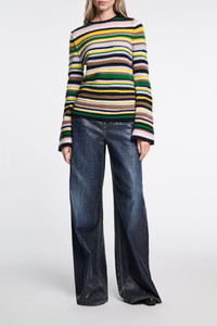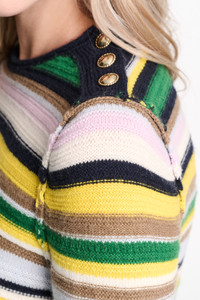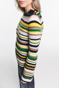 The round neck sweater is made from soft cashmere which is artfully knit into bright stripes. The fitted style has flared cuffs and inside-out side seams. Material & Care - 100 % Cashmere - Striped cashmere sweater - Round neckline - Gold-toned buttons on one shoulder - Slight stripe irregularities give an artisanal effect - Inside-out side seams Size & Fit - Our model is 179 cm tall and wears a size S - Fitted - Fitted shoulders - Fitted sleeves flare at the cuffs