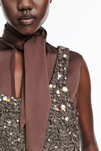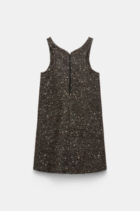 The tweed mini-dress has an A-line silhouette and sparkles with crystal and pearl bead embellishment. The dress has a scoop neckline in the front and pretty curved V back. Material & Care - 42 % Wool, 29 % Polyacrylic, 20 % Polyester, 6 % Polyamide, 3 % Other Fibres - Embellished A-line dress - Hand-embellished front with pearls and crystals - Accentuated topstitching - Fully lined - Hidden back zip closure - Hand wash cold / Machine wash old - Wash with similar colors Size & Fit - Our model is 180cm tall and wears a size 2 - Slight A-line