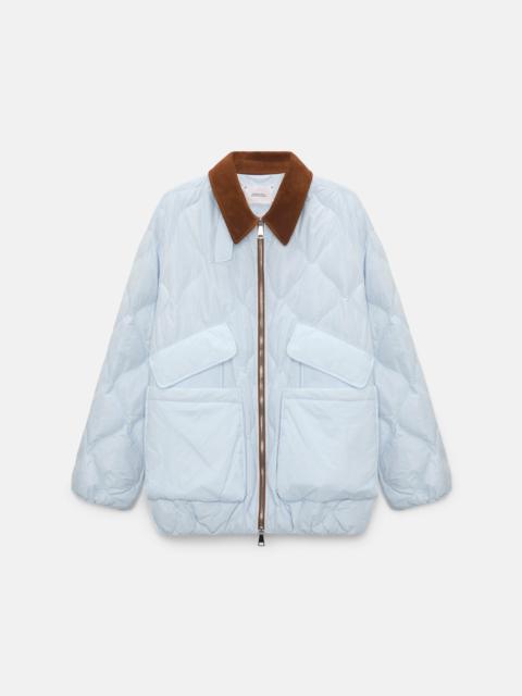 Channeling the timeless look of a barn jacket, our modern remake is made from quilted down and has a faux leather collar. Material & Care - 100 % Polyamide - Down jacket with faux leather collar - Double patch pockets - Front zip closure - Elastic hem - Elbow patches - Hand wash program / Machine wash - Wash with similar colors Size & Fit - Our model is 178cm tall and wears a size 2. - Slightly oversized