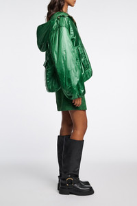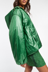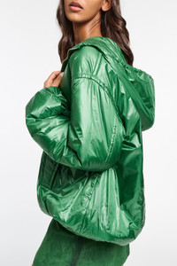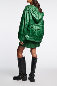 The anorak-style jacket is made of shiny nylon. The jacket has a partial front zip closure and XL patch flap pocket on the back. The jacket is slightly oversized and has a drawstring hood and hem. Material & Care - 100 % Polyamide - Hooded nylon anorak-style jacket - Partial front zip closure - Front pockets - Back flap patch pocket - Adjustable drawstring hem and hood - WE CARE - This item is finished according to STANDARD 100 by OEKO-TEX, 22.0.98928 Hohenstein HTTI Size & Fit - Our model is 179 cm tall and wears a size S - Slightly oversized