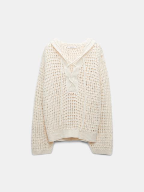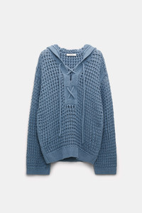 Call it a hoodie or the sweater of your dreams. The pointelle knit style is crafted in a cotton blend, with patterning reminiscent of intricate crochet. The relaxed sweater laces up the front and has comfortable wide long sleeves. Material & Care - 81 % Cotton, 18 % Polyamide, 1 % Elastane - Cotton blend textured knit hoodie with laced front - Rib knit trim - Wide long sleeves - Hand wash cold / Machine wash cold - Wash with similar colors Size & Fit - Relaxed fit - Wide sleeves - Dropped shoulders