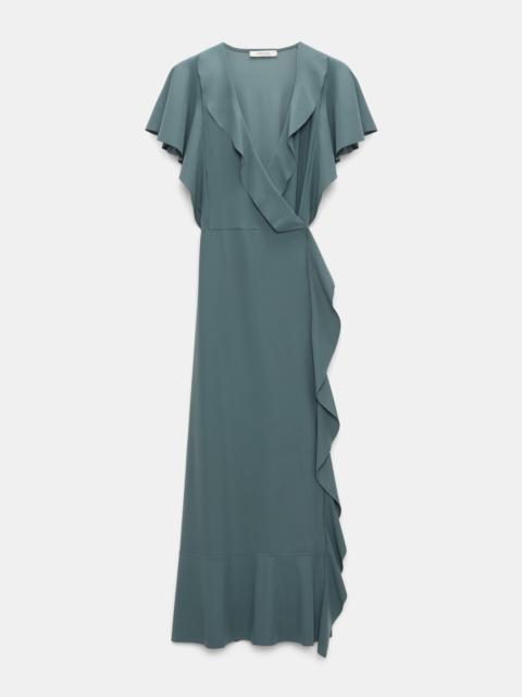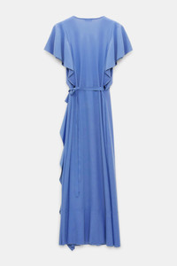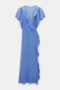 Life's a beach. Pack this dress: The long dress has a ruffle wrap front and draped ruffle short sleeves. The dress comes with a matching belt. Material & Care - 75 % Polyamide, 25 % Elastane - Wrap dress with ruffles - Raw edges on the ruffles - Bonded belt - WE CARE - This item is finished according to STANDARD 100 by OEKO-TEX, 22.0.98928 Hohenstein HTTI - Mild wash / Delicates - Wash with similar colors Size & Fit - Loosely fitted